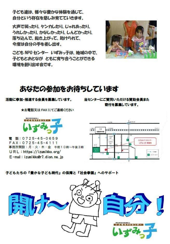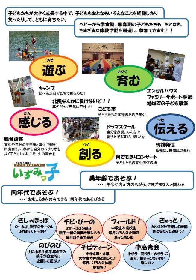 ※ こどもNPOセンターいずみっ子は営利を目的とした団体ではありません。